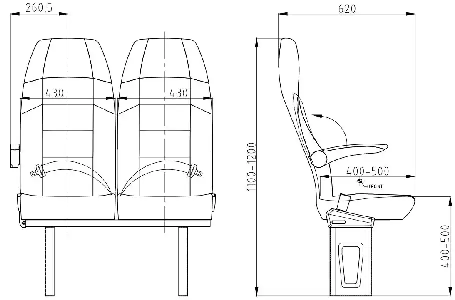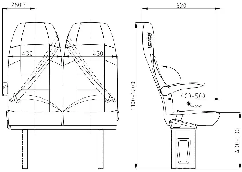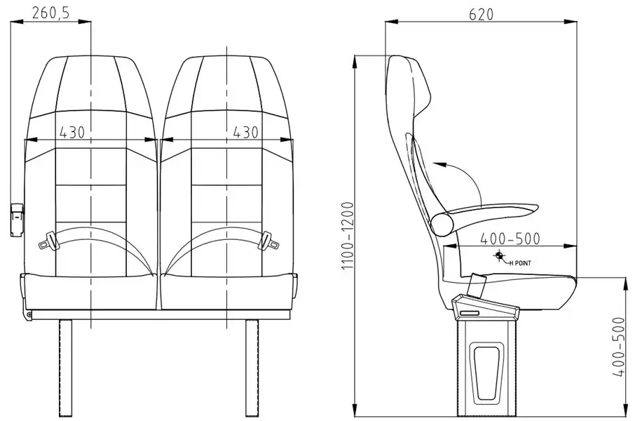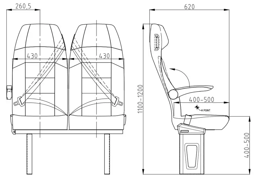 El asiento del Orbis 100 fue diseñado y fabricado sobre la base de un respaldo fijo para cumplir con los requisitos del transporte de larga distancia